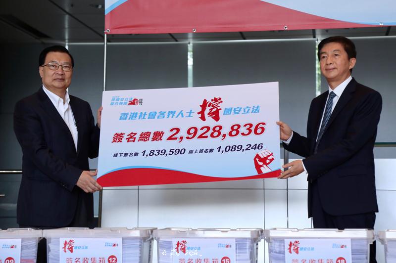 由「香港各界撐國安立法聯合陣線」發起的撐國安立法簽名行動,從5月24日至5月31日晚12時,「聯合陣線」一連8天在全港開設了5,400多個街站,2.5萬人次義工參與,合共收到1,839,590個簽名;同時,在網上收集到1,089,246個簽名,線上線下合共...[详细]