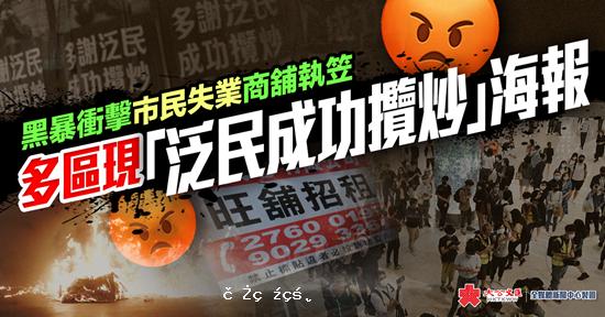 黑暴衝擊及折磨香港長達近1年,失業大軍多達20萬人,多間企業倒閉,市面出現大量吉舖,營商環境陷入低谷,毫無底線的「攬炒派」,把香港推向無底深淵。惟「攬炒派」從不譴責黑暴行為,只歸咎港府抗疫不力。近日,有市民為表達不滿,將多張...[详细]