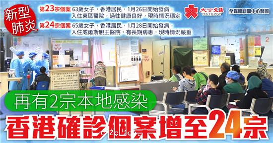 新型肺炎 | 再有2宗本地感染 香港確診個案增至24宗