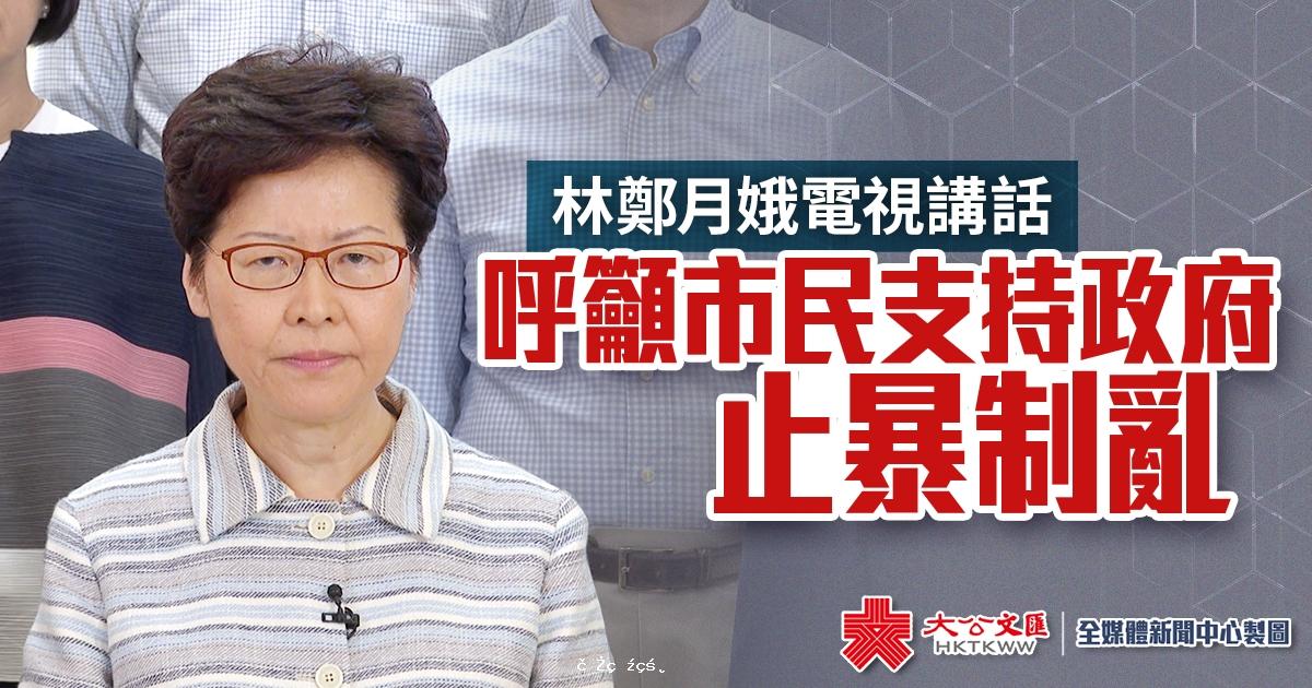 林鄭月娥電視講話 呼籲市民支持政府止暴制亂
