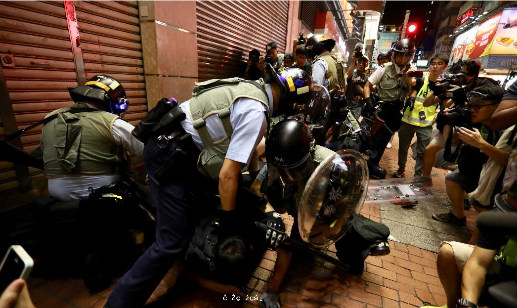 示威者於彌敦道挑釁警方並發生衝突 數人被帶走
