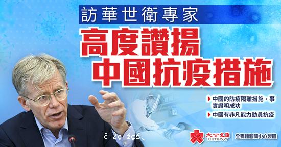 訪華世衛專家高度讚揚抗疫措施:若感染願在中國治療