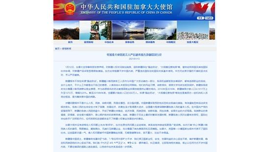 加拿大日前發表聲明,對新疆人權狀況妄加指責,又宣稱對新疆產品採取貿易限制措施。中國駐加拿大使館今日(13日)表示,加方此舉粗暴干涉中國內政,嚴重違反國際法和國際關係基本準則。中方對此表示強烈不滿和堅決反對,予以嚴厲譴責。 [详细]