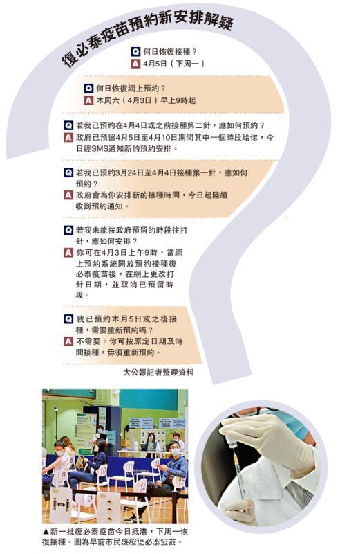 重啟打針/30萬劑復必泰今抵港 下周一復打