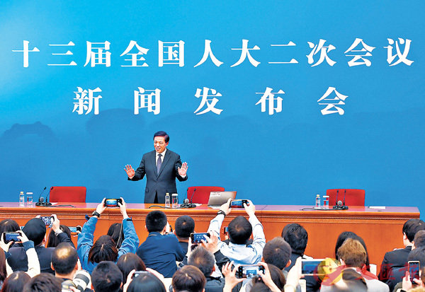 ■ 十三屆全國人大二次會議昨日在北京人民大會堂舉行新聞發佈會。大會發言人張業遂就大會議程和人大工作相關的問題回答中外記者提問。 中新社十三屆全國人大二次會議今日在北京人民大會堂開幕。會議期間,《中華人民[详细]