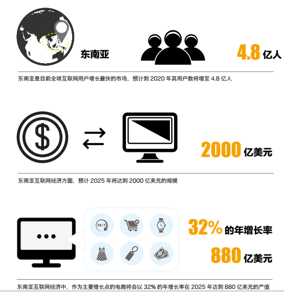 作為印尼和菲律賓等高速增長經濟體的所在地,東南亞擁有龐大的互聯網用戶群,其中主要集中在移動領域。報告稱,這將推動該地區的互聯網經濟規模在今年將達500億美元,到2025年達到2000億美元,佔地區GDP總值的比例也將由目前的2%攀升至20...[详细]