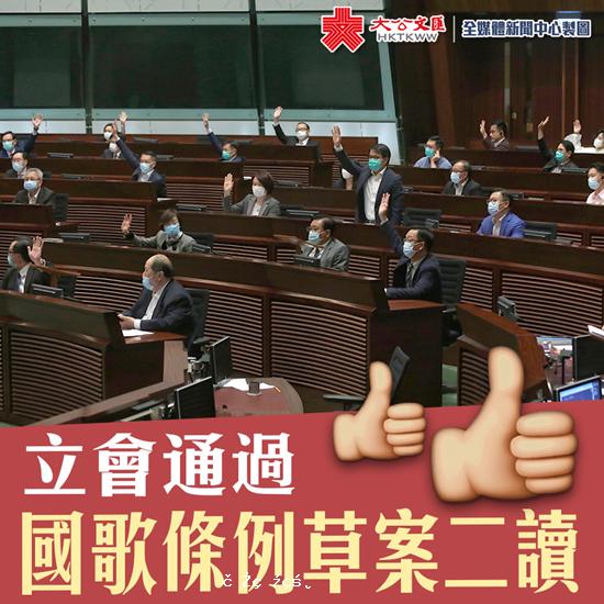 香港立法會在今晚(28日)7時前休會,完成二讀辯論《國歌條例草案》。 政制及內地事務局局長曾國衞總結發言時表示,有人認為法例強迫市民尊重國歌及愛國,他認同得到別人的尊重,不能單靠刑罰,同時要配合教育,當局亦會加強宣傳及推廣...[详细]
