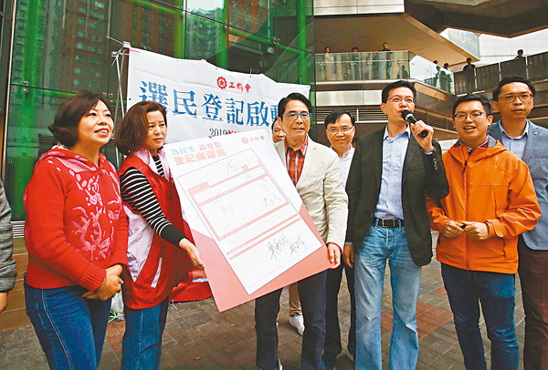 ■工聯會舉行選民登記大行動啟動儀式。香港文匯報記者劉國權 攝為讓香港社會真正聚焦於社會民生和經濟發展,而非流於政治爭拗和無謂揣測,市民須走出第一步,登記成為選民。工聯會昨日在港九多個地區,擺設50多個街站[详细]