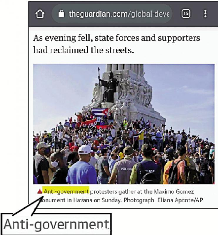 古巴11日發生反政府示威,部分西方媒體急於煽風點火卻大鬧烏龍。在美聯社將一張古巴政府支持者的照片標記為「反政府示威者」後,英國《衛報》等媒體未加核查便以訛傳訛,引發廣泛爭議。[详细]
