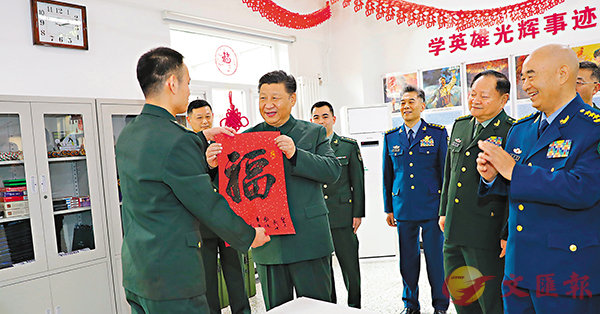 ■習近平視察看望北京衛戍區,該區戰士現場書寫「福」字敬送習主席。據新華社報道,春節將至,中共中央總書記、國家主席、中央軍委主席習近平昨日專程來到北京衛戍區,深入基層班排,察看執勤哨位,親切慰問部隊官兵[详细]