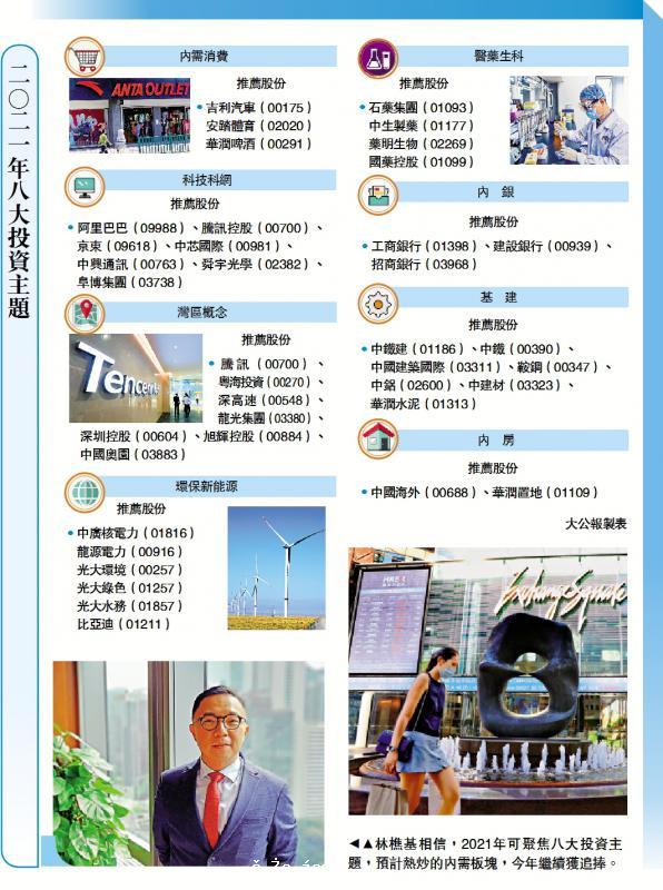 「有智慧不如趁勢」。若要在股票市場有收穫,投資者先要了解政策方向,再捕捉市場板塊輪動節奏。光銀國際研究部主管林樵基相信,2021年市場將會有八大投資主題,包括去年熱炒的內需消費板塊,今年繼續獲資金追捧。其次,新經濟龍頭股經過...[详细]