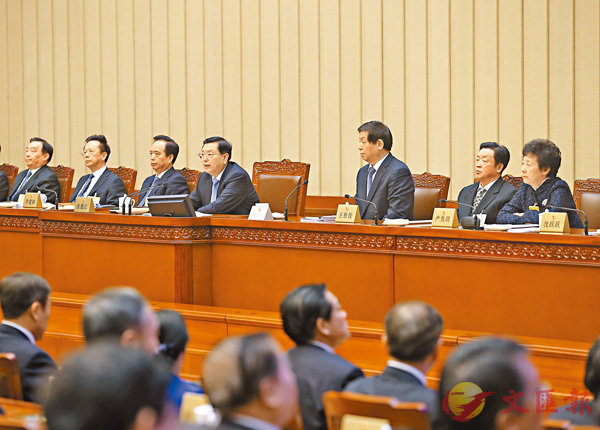 ■1月29日 十二屆全國人大常委會舉行第三十二次會議,張德江委員長(左四)主持。中共中央政治局常委、憲法修改小組副組長栗戰書(右三)在會上作中共中央關於修改憲法部分內容的建議的說明。 資料圖片新華社署名文章[详细]