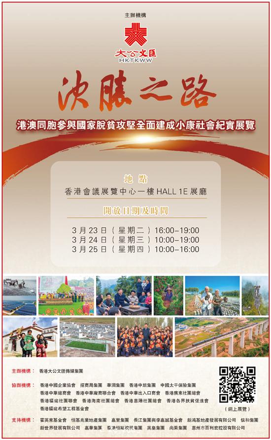 「決勝之路——港澳同胞參與國家脫貧攻堅全面建成小康社會紀實」展覽23日開幕