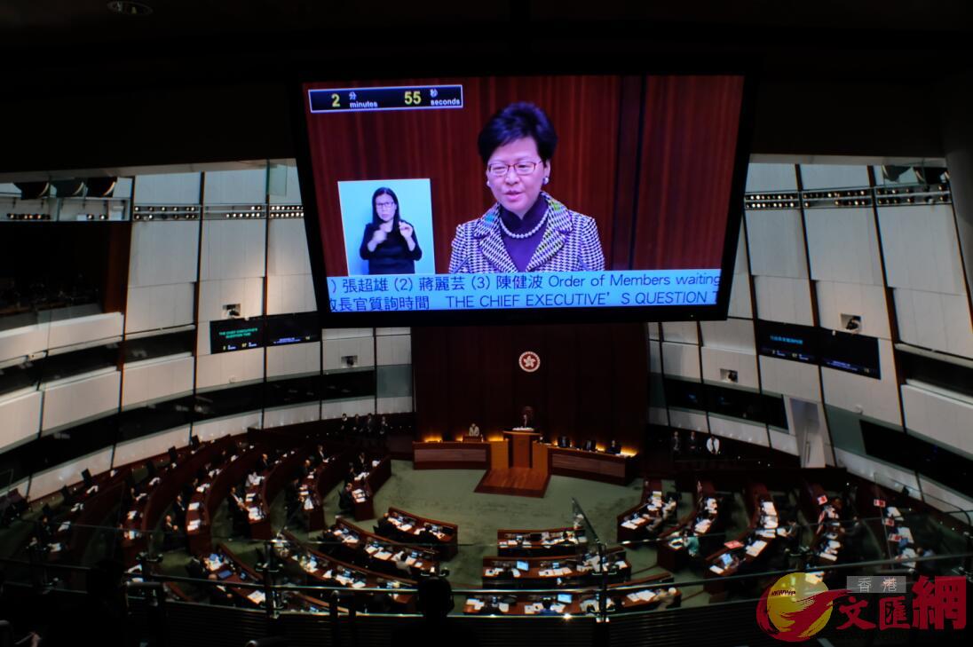 林鄭月娥今日出席立法會答問大會(大公文匯全媒體記者 麥鈞傑攝)大公文匯全媒體報道:香港特區政府修訂《逃犯條例》,草案今日(3日)提交至立法會首讀。行政長官林鄭月娥上午出席立法會答問大會發言期間,有議員在座位[详细]