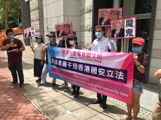 團體「不平則鳴」成員於今日(18日)早10時許,拉起「抗議英國抹黑國安法,勾結漢奸黎反中亂港」的橫額,沿法院道遊行至英國駐港總領事館,期間高喊「香港已回歸,英犬請返歸」、「抹黑國安法,損港人利益」等口號,隨後向領事館代表遞交...[详细]