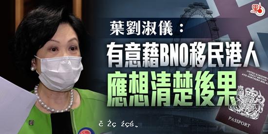 葉劉淑儀:有意藉BNO移民港人應想清楚後果