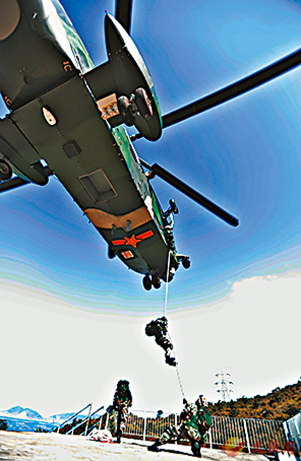 ■特戰隊員索降任務區域。 據新華社報道,春節剛過,解放軍駐香港部隊組織的多軍兵種聯合演練在香港地區的陸海空域上演。演習錘煉指揮臨機決斷拂曉時分,接到緊急出動的某合成營車隊駛出營區,演練正式開始。隨[详细]