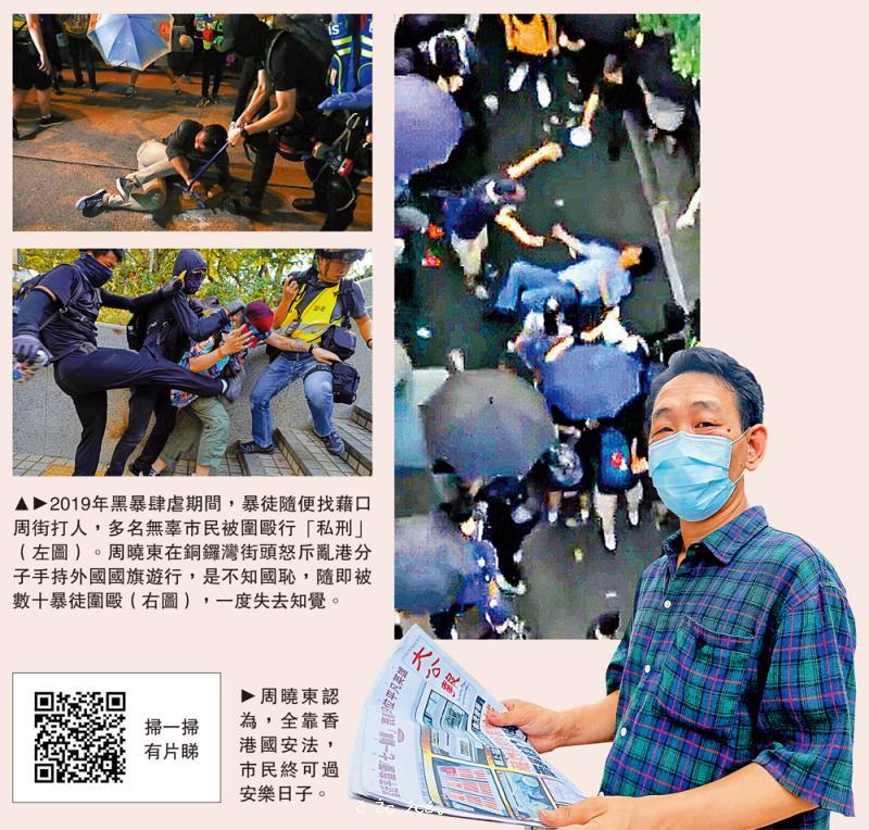 香港國安法實施一年,社會回歸太平。「愛國男」周曉東在2019年9月黑暴肆虐期間,在銅鑼灣街頭怒斥亂港分子手持日本等外國國旗遊行,是不知國恥,豈料周曉東隨即被數十暴徒圍毆,一度失去知覺,徘徊生死邊緣。事隔兩年,傷勢大致康復的周曉...[详细]