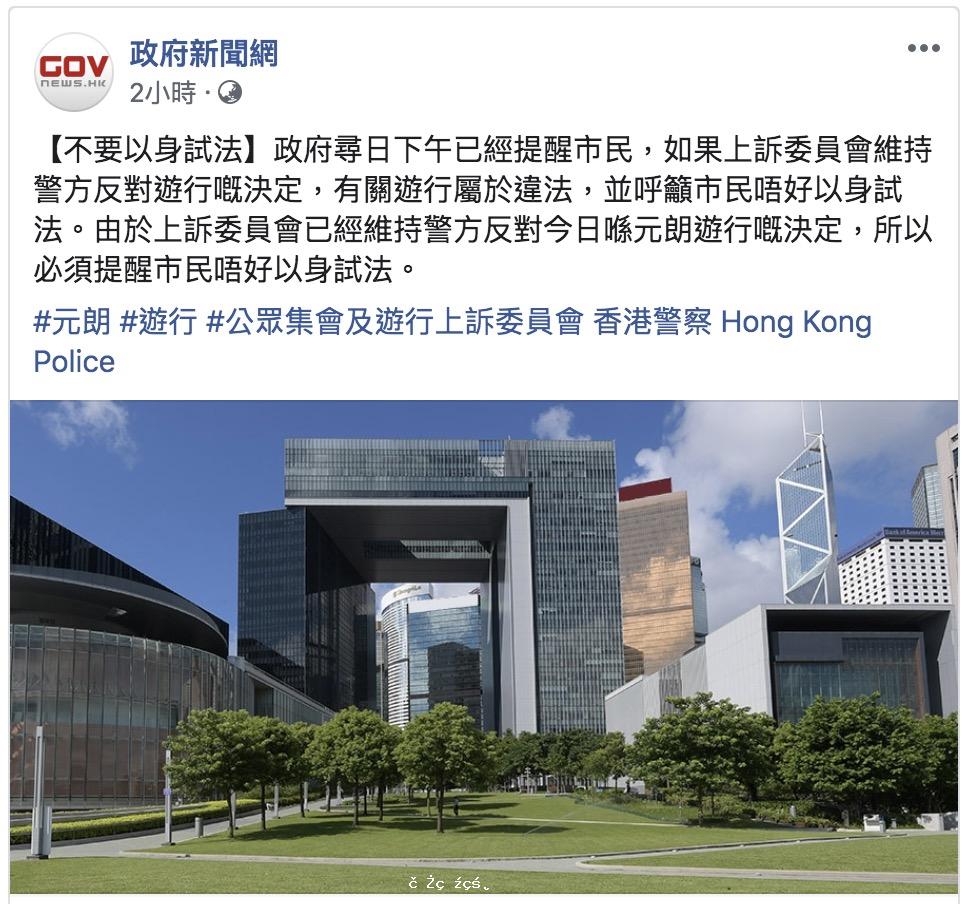 元朗遊行屬違法 港府提醒市民切勿以身試法