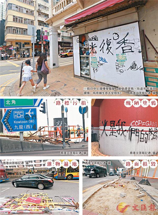 街道狼藉清潔工「洗極唔完」 中上環商舖:慘過沙士時 香港近期每個星期六日均有大批暴徒闖至不同地區製造衝突,不斷破壞公物,塗污牆壁,令街道滿目瘡痍,交通被癱瘓,商戶生意亦大受打擊。中環及上環前日再次因暴徒[详细]