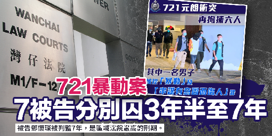 前年7月21日在元朗發生的暴力衝突案,7名「白衣人」被告今日被判暴動罪成,判囚3年6個月至7年。平反721大聯盟認為判決不公,認為7名被告於法庭上受到不公平的審訊,形容重判「白衣人」簡直是六月飛霜,天理難容。其中被指在場指揮的鄧懷琛...[详细]