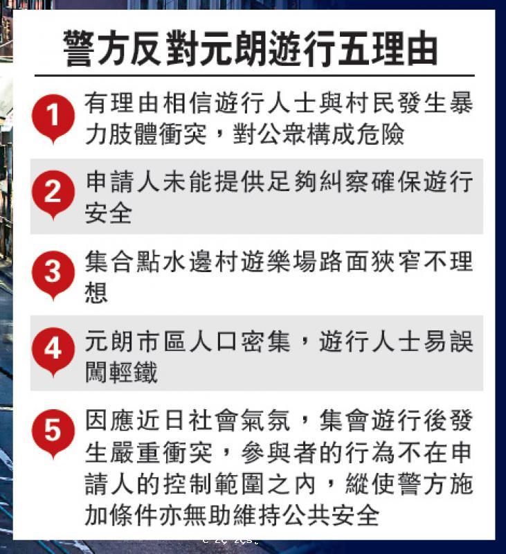警方:元朗遊行風險高 若批出不反對通知書是不顧民意