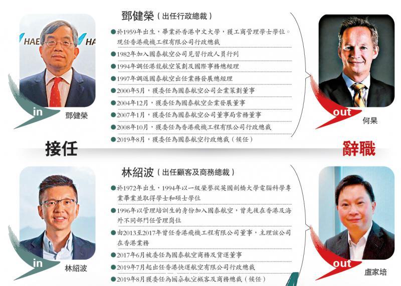 國泰多名員工近月牽涉連串違法亂港醜聞,國泰航空兩名管理層昨日引咎辭職!國泰航空昨日發表公告,宣布管理高層人事變動,指董事局已接受何杲辭任行政總裁,以及盧家培辭任顧客及商務總裁,並於8月19日起生效。何杲和盧家培同時確認,其呈...[详细]