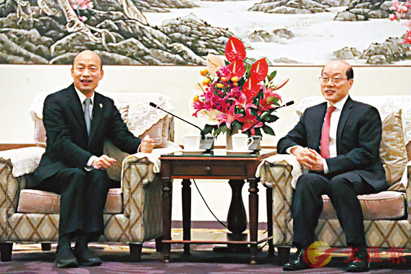 ■中共中央台辦、國台辦主任劉結一(右)昨日會見高雄市長韓國瑜一行。香港文匯報記者黃仰鵬 攝中共中央台辦、國務院台辦主任劉結一昨日下午在深圳西麗麒麟山莊麒麟苑會見高雄市長韓國瑜一行。劉結一表示,此次韓國瑜[详细]