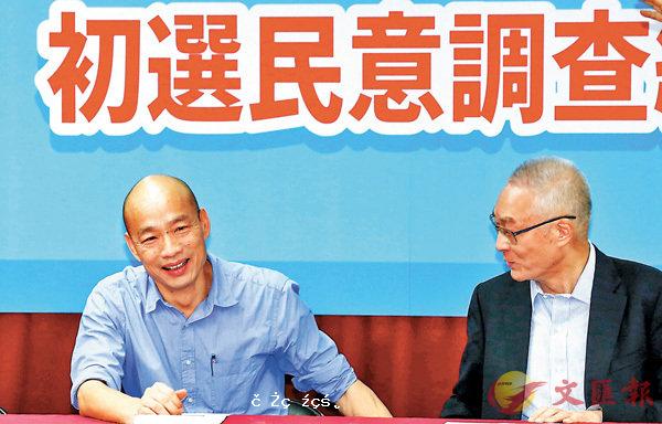 ■昨日,國民黨在台北中央黨部公佈該黨2020年台灣地區領導人選舉初選民意調查結果。圖為記者會上,國民黨主席吳敦義(右)恭喜韓國瑜勝出。 中新社[详细]