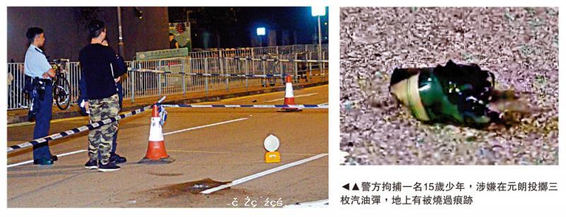 一名15歲少年,因昨日凌晨在元朗消防局對開馬路投擲三枚汽油彈,涉嫌縱火、藏有工具可作非法用途及未能出示身份證明文件被捕,現正被扣留調查。案件交由元朗警區刑事調查隊第一隊跟進。 [详细]