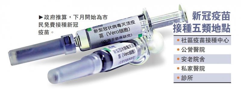 疫苗料下月起五類地點接種