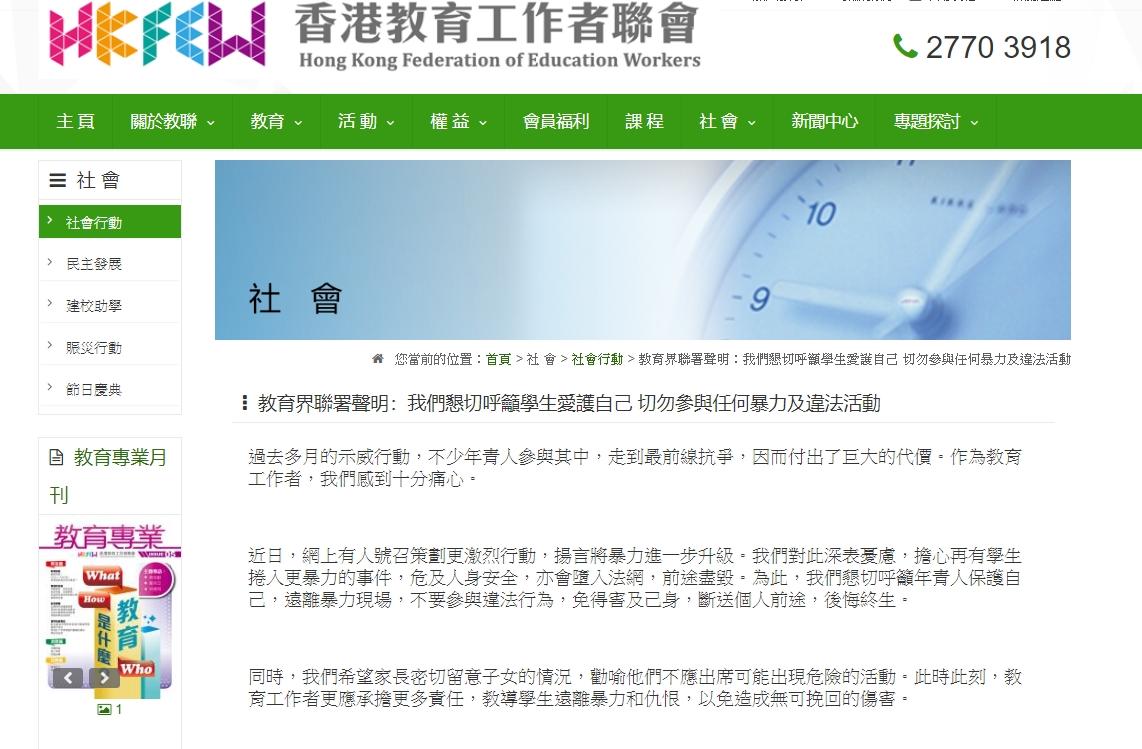 港教育界籲學生愛護自己 勿參與暴力及違法活動