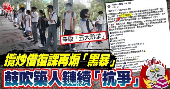 攬炒借復課再煽「黑暴」 鼓吹築人鏈續「抗爭」