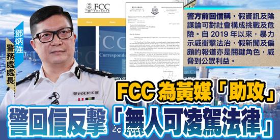 FCC為黃媒「助攻」 警回信反擊「無人可凌駕法律」