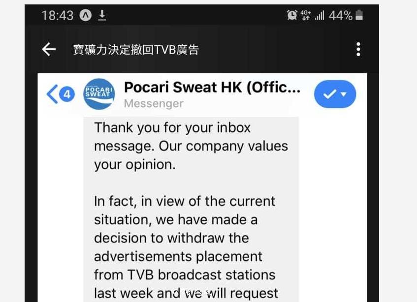 疑存政治目的 日飲「寶礦力」抽走TVB廣告