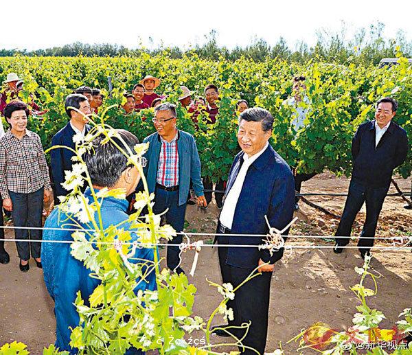 ■習近平總書記昨日在銀川考察調研。他先後來到賀蘭縣稻漁空間鄉村生態觀光園、賀蘭山東麓葡萄種植園,了解當地發展特色農業產業情況。 網上圖片[详细]