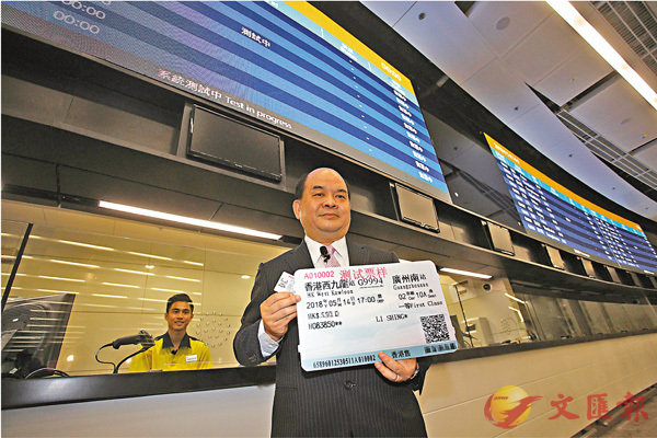 ■李聖基昨親身示範到櫃位購買高鐵車票的過程。 香港文匯報記者劉國權 攝西九站設票務處售票機 可直接買飛赴內地18城市廣深港高鐵(香港段)預計於今年第三季開通,港鐵昨日公佈有關票務安排。車票將採取實名制,乘客[详细]