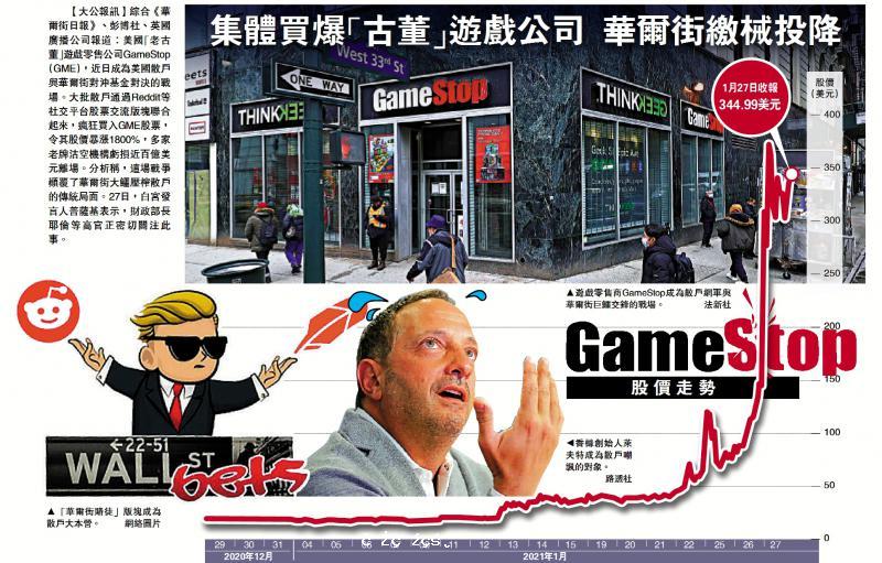 綜合《華爾街日報》、彭博社、英國廣播公司報道:美國「老古董」遊戲零售公司GameStop(GME),近日成為美國散戶與華爾街對沖基金對決的戰場。大批散戶通過Reddit等社交平台股票交流板塊聯合起來,瘋狂買入GME股票,令其股價暴漲1800%,...[详细]