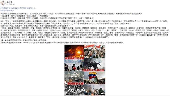 吳秋北引述美國著名政治理論家法朗西斯·福山書中內容, 指美國推動「民主」是侵略他國的詭計 (吳秋北社交網站截圖) 吳秋北今日(20日)在社交網站發文,指美國一直將策動他國政權變更作為處理國際關係的一種外交政策。推動「民主」,實則是...[详细]
