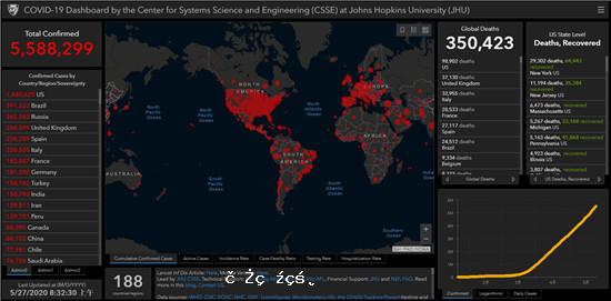 根據美國約翰霍普金斯大學今日(27日)上午更新的數字,新冠肺炎全球累計確診病例達558萬宗,死亡人數35萬。 [详细]