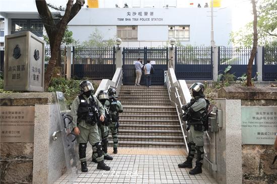 20日下午二時許,一名戴紅色帽、彩色外套的中年漢在尖沙咀警署外嘗試阻止黑衣暴徒破壞時,遭多名暴徒圍毆。其間,有人起腳踢他,有人用黑漆噴面,中年漢被打致流鼻血,只好跑向附近的尖沙咀警署求援,獲警方開閘入內。 [详细]