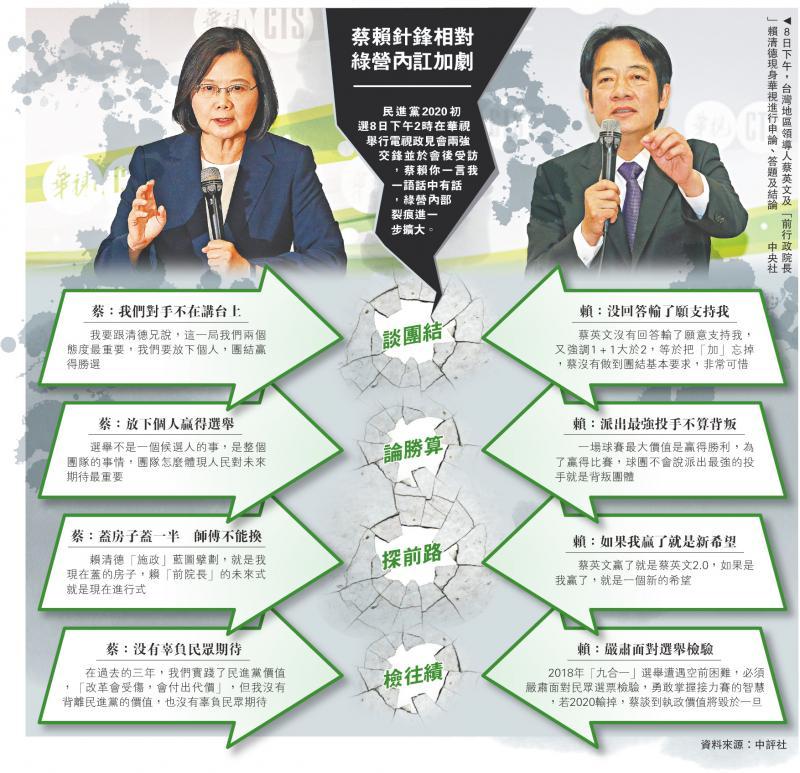 民進黨2020候選人提名戰8日拉開戰幔,該黨初選唯一一場電視政見發表會當天下午舉行,台灣地區領導人蔡英文及「前行政院長」賴清德現身華視進行申論、答題及結論,會後二人分別召開記者會。二人為求於初選出線當天唇槍舌劍,為10日起舉行的...[详细]