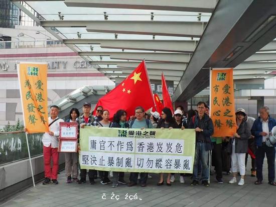 香港市民團體「愛港之聲」於20日到特首辦外請願,其間有市民高舉五星旗並高叫「庸官不作為,香港岌岌危」、「堅決止暴制亂,切勿縱容暴亂」等口號,促請政府加強執法,各部門積極配合,盡速止暴。 [详细]