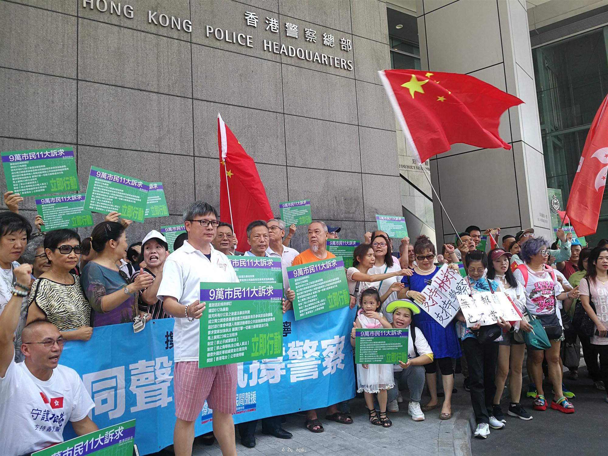 有團體到灣仔警察總部外請願,支持警方執法。 一批「愛港聯盟」成員下午到灣仔警察總部,抗議有示威者近日在各區破壞,希望政府盡快實施緊急法,保障市民的生命財產。他們又向警察致送慰問卡,感謝他們維持香港治安。 [详细]