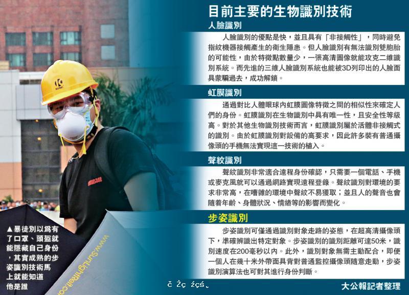 亂港分子接連發動暴力衝擊,口罩、頭盔成了他們隱藏身份的工具。《大公報》上周作專題報道指出,「蒙面暴徒」始於2016年旺角暴動,通過戴口罩或蒙面以逃避警方追捕。然而,今時今日蒙面已不能阻礙「認人」,內地最近研發出僅通過行走步姿...[详细]