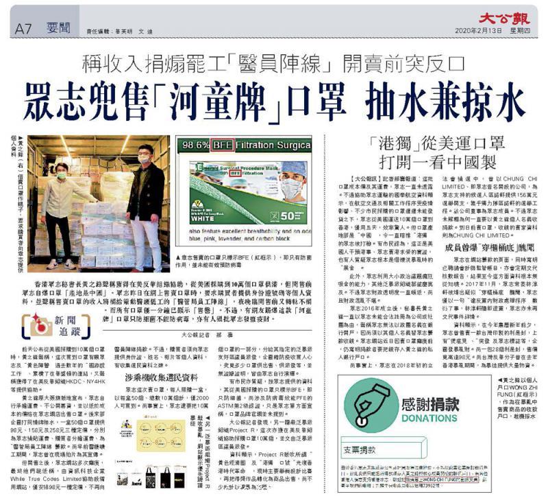 《大公報》昨日踢爆,香港眾志從美國採購到10萬個口罩,企圖「抽水」兼「掠水」(圖)後,多名網民進一步反映,購買安排一片混亂,戶口被多次扣錢,卻從未收到成功購買的確認電郵,有網民甚至被連續扣了九次錢。眼見群情洶湧,香港眾志...[详细]