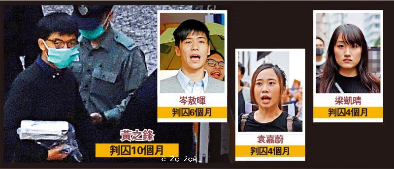 區域法院昨日就一宗去年六月在維園舉行的非法集結案宣判,其中香港眾志前秘書長黃之鋒、荃灣區議員岑敖暉、南區區議員袁嘉蔚及觀塘區議員梁凱晴等四人,早前均承認一項明知而參與未經批准集結罪被判刑。法官陳廣池判刑時指出,一眾被告當...[详细]