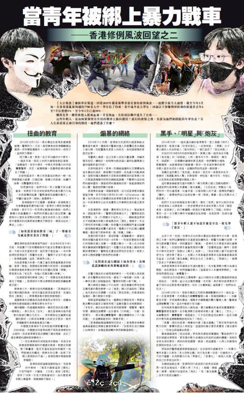 當青年被綁上暴力戰車據新華社報道:回看2019年嚴重衝擊香港社會的修例風波,一組數字最令人痛惜:截至今年3月初,在參與暴亂被拘捕的7700多人中,學生佔了四成,當中逾半是大學生;18歲以下涉嫌刑事毀壞的被捕者去年6至7月佔整體5%,至今年1月已逾50%。[详细] 2020-05-10 09:23 分类:港人港語