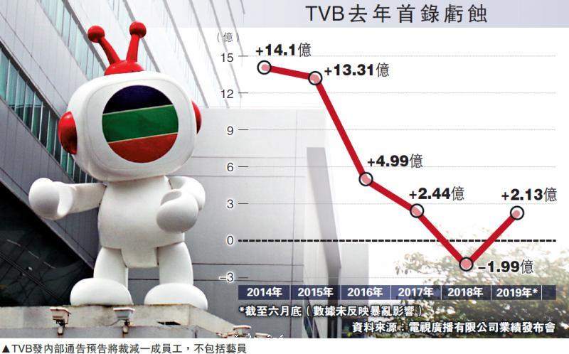 TVB受黑暴重創 勁炒350人暴亂摧殘香港經濟,裁員潮淹至電子傳媒及演藝製作行業。本港電視龍頭企業「電視廣播有限公司」(TVB)宣布年底前裁減約350名員工,藝員部不受影響。有影視界人士直言,現時社會氣氛低沉,本來已影響媒體廣告收益,亂港暴徒又肆意針對TVB,...[详细] 2019-12-17 10:40 分类:港人港語