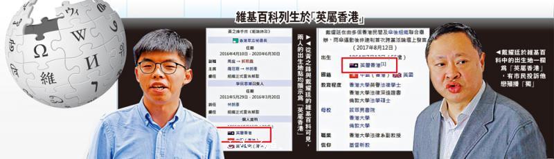 具有大量資訊卻又公開任人修改的「維基百科」,不僅常被用作肆意抹黑、攻擊他人的武器,亦成為戀殖播「獨」的溫床。《大公報》發現,包括「佔中」發起人戴耀廷、前香港眾志秘書長黃之鋒在內的多名反對派政客,於維基百科條目中的出生地一...[详细]